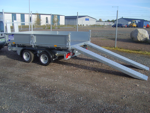 Tippsläp från 1500 kg totalvikt med en axel upp till totalvikt 3500 kg med två axlar.